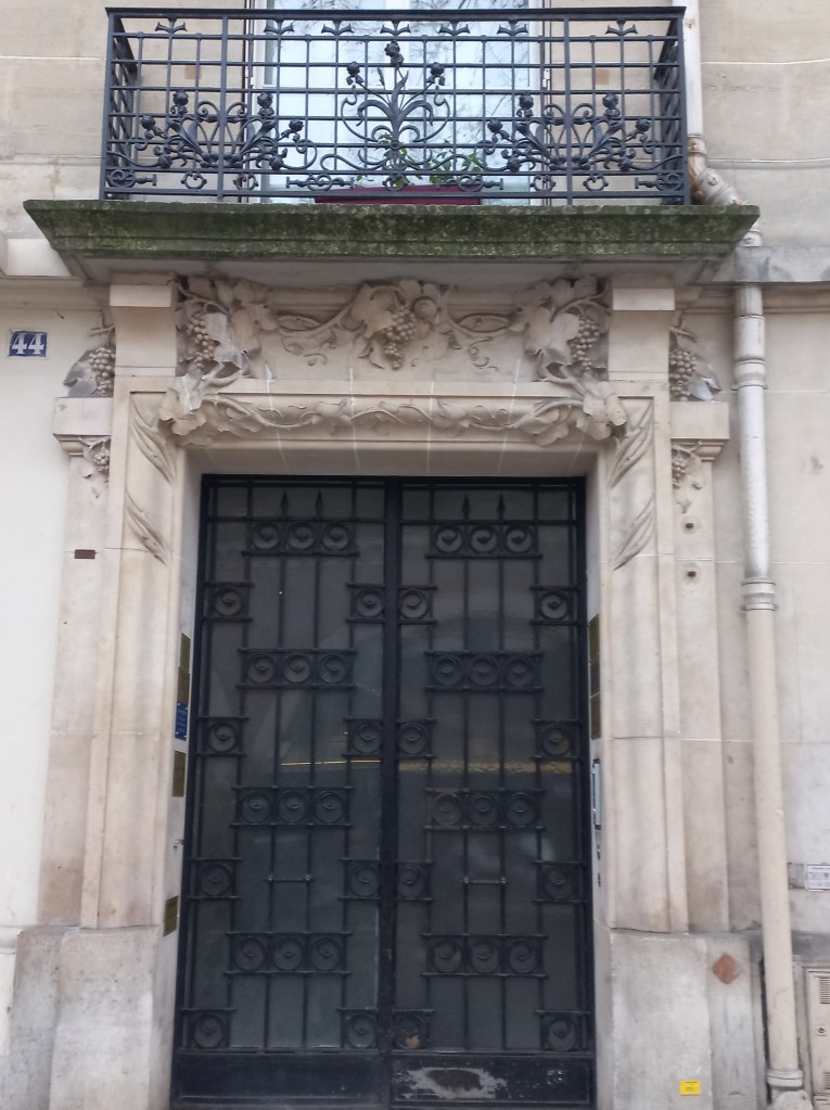 | 44 rue de la voûte | Art deco. Highly geometric ironwork whose lines echo a prominent lintel. A similar, though less original, door can be found at 44bis rue de la voûte. |