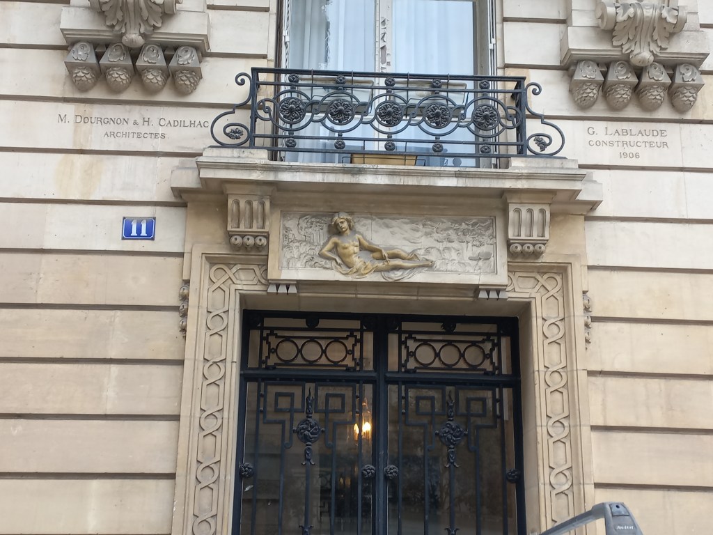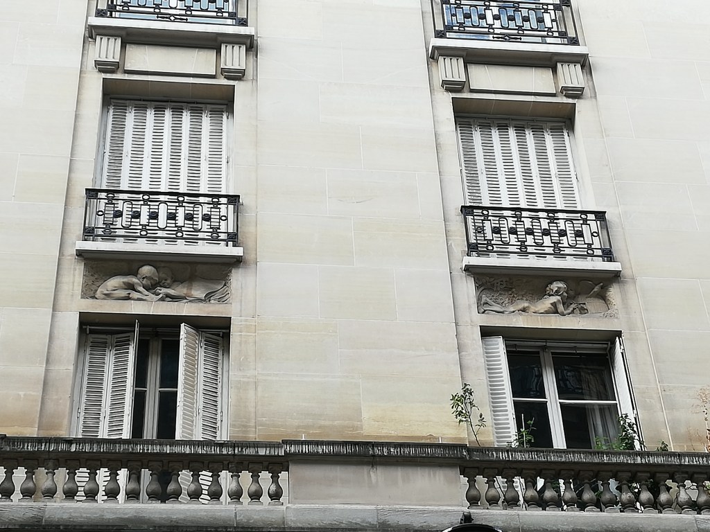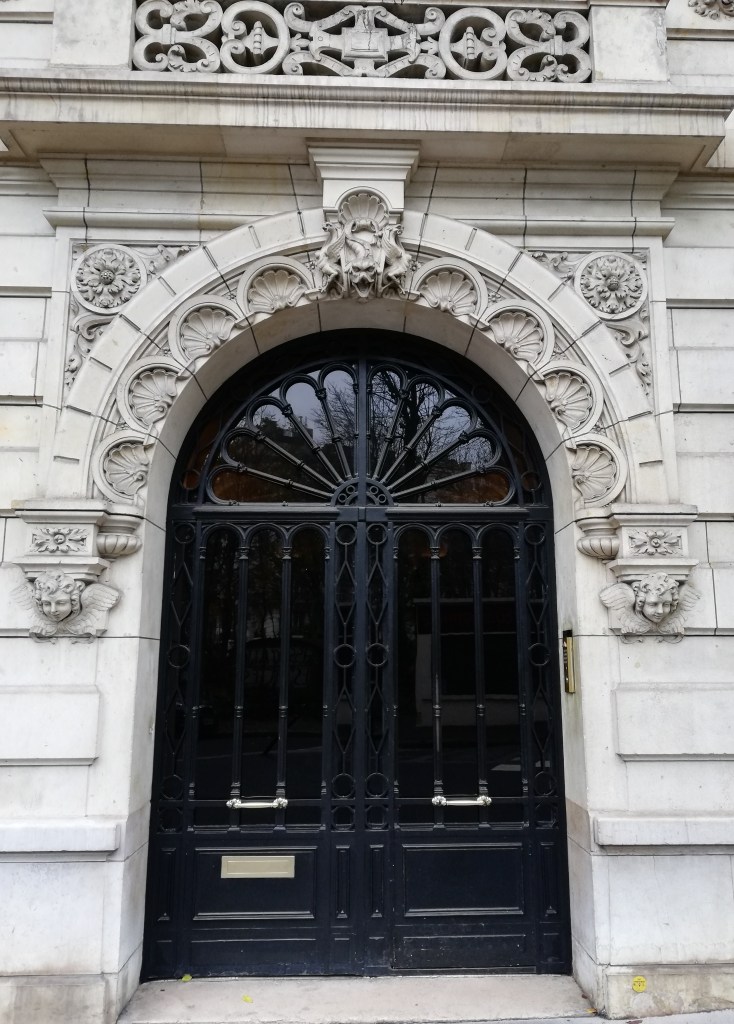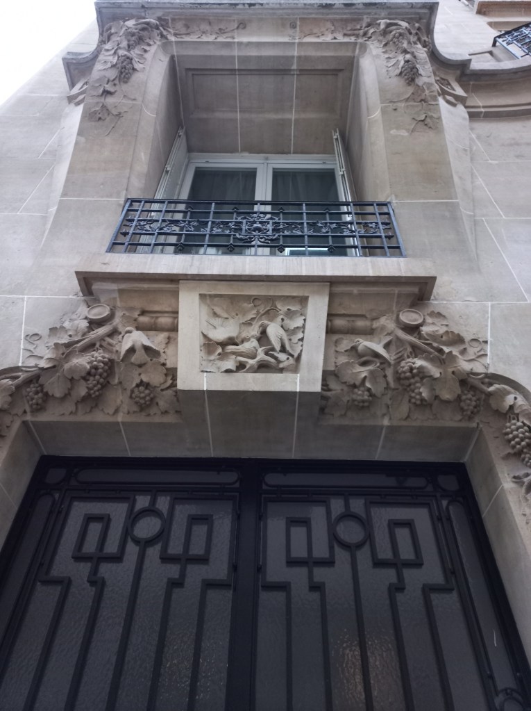 | 100 rue de La Tour | Porte cochère ornée de deux curieuses petites figures. Imposant mascaron masculin grimaçant au-dessus de la porte. Guirlande de fruits sur les pilastres de part et d’autre de la porte. Architecte A. Sauvage. Important décor autour des portes des 102 et 104 rue de la Tour, construits par le même architecte. |