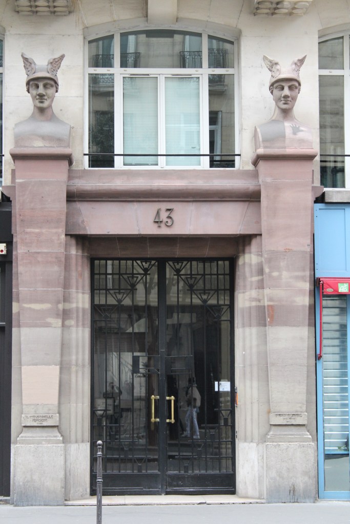 Encadrement de porte monumental orné de deux bustes d’Hermès.