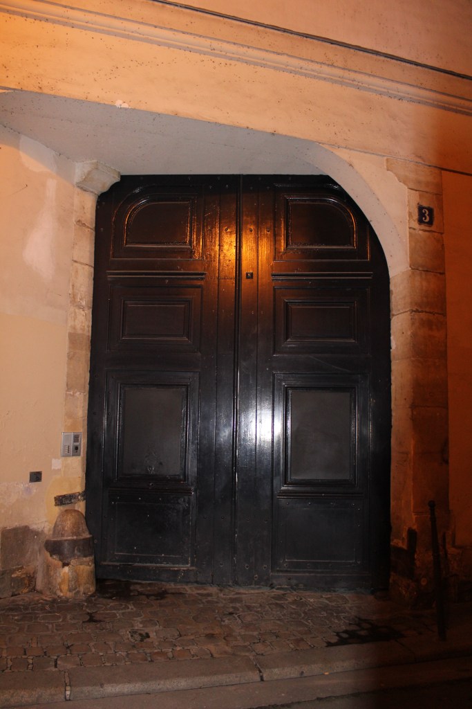 Porte cochère étonnante par son ouverture en biais par rapport au trottoir. 17è siècle