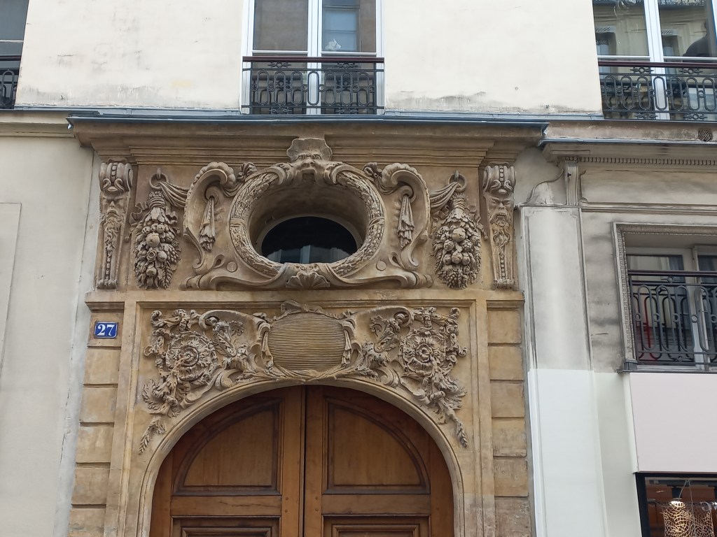 | 4 rue Monsieur le Prince | Battants très sculptés. Fenêtre encadrée d’un décor de pierre au-dessus de la porte |