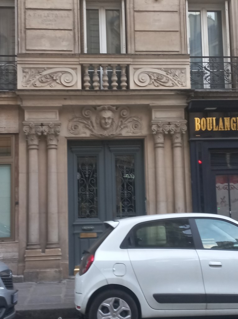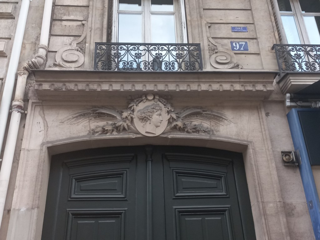 | 37 rue du Cherche Midi | Visage de femme les yeux tournés vers la gauche surmonté d’un cartouche avec l’inscription « J’écoute ». Caducées sur la ferronnerie de la porte. |