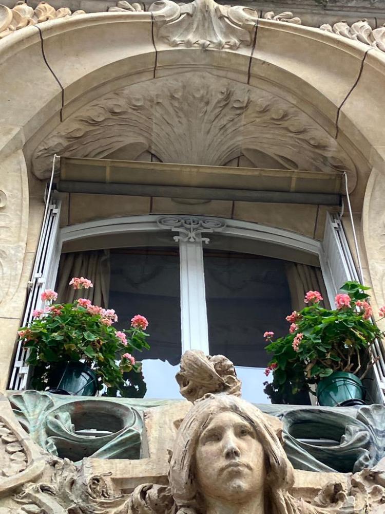 | 23 rue Cler | Feuillage et deux têtes d’enfants. Frise le long de la façade avec des têtes d’enfants |