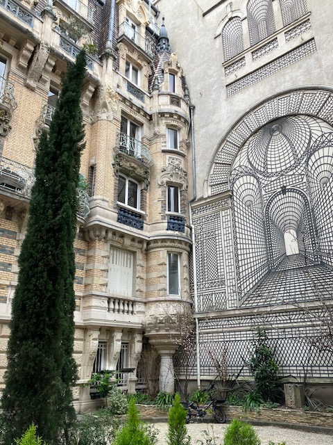 | 5 avenue de Saxe | Très belle ferronnerie. Décor de branches de pin avec pommes de pin maritime sur l’encadrement de la porte. 1905 |