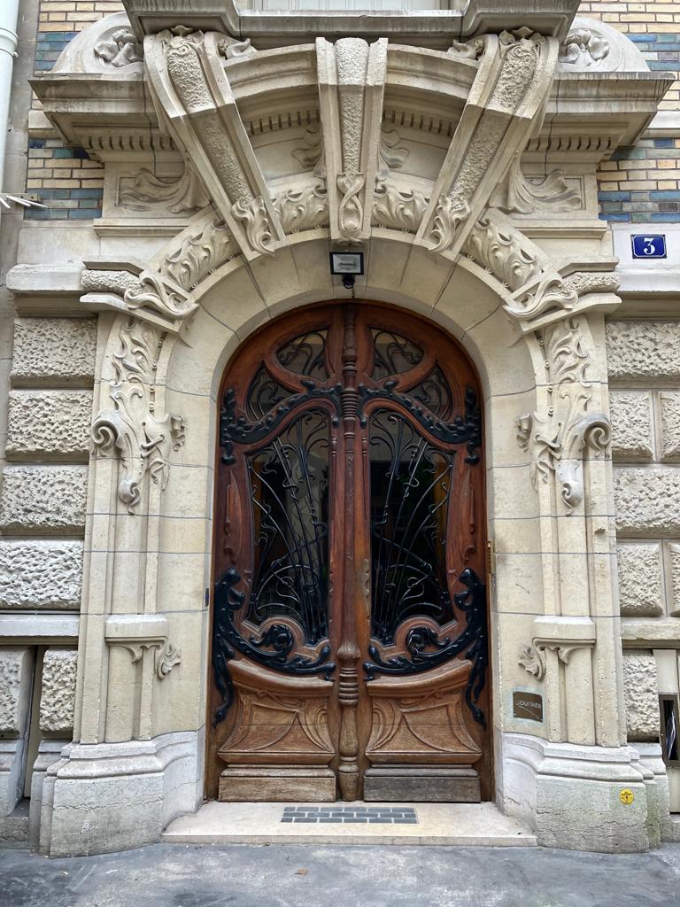 | 50 avenue de Ségur | Porte arrondie avec autour décor végétal inscrit dans un arc brisé. Style art nouveau. Architecte Gabriel Ruprich Robert. 1899 |