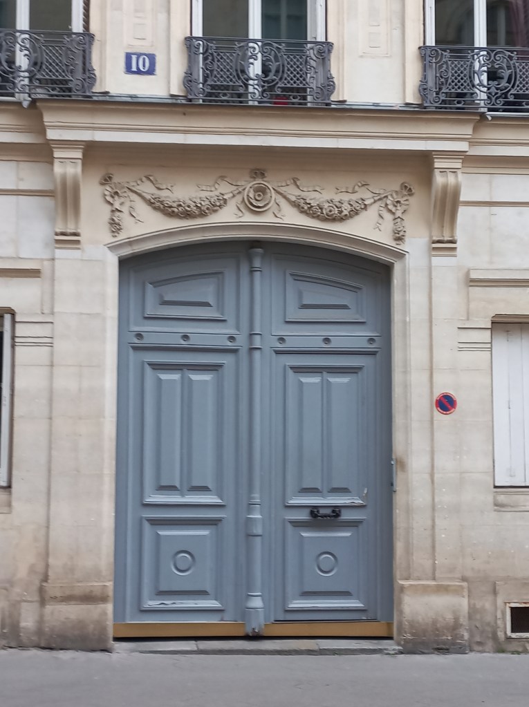 | 11bis boulevard Haussmann | Garlands of fruit and vegetables. Two small lions frame the door, each surmounted by a large vase. |