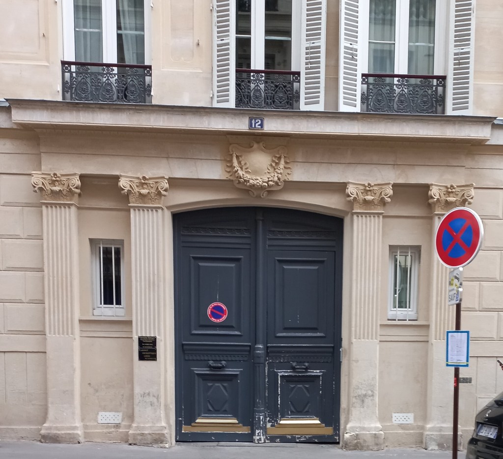 A huge shell, with shells at its base, surmounts the door at the corner of Boulevard de la Madeleine and rue Vignon. An identical shell exists at the corner of the building and rue Godot de Mauroy. This building was the headquarters of Messageries Maritimes until 1975, when they moved to La Défense.