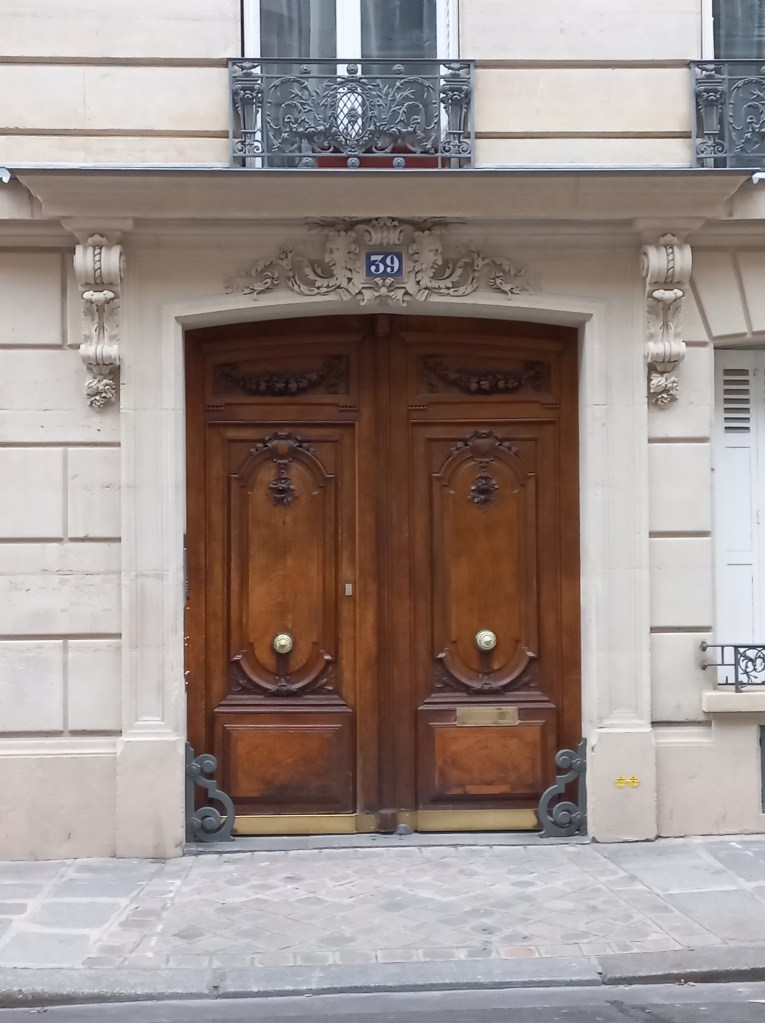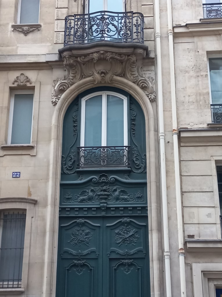 | 23 rue Ballu | Small pedestrian door with an imposing cartouche on the door key. The door is surmounted by a bull’s eye decorated like a medallion. To the left, a curious arcade surmounts a large window with balcony and two wooden doors with transoms. |