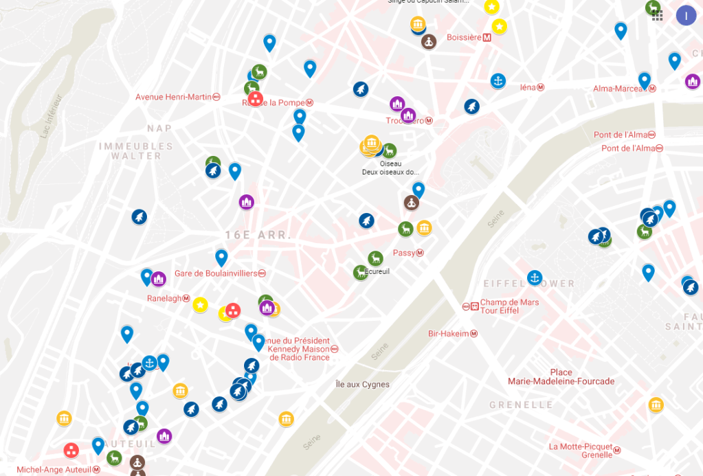 Il fait froid, il pleut, les jeux du square sont mouillés, il est trop tard pour trouver une activité pour la journée … Comment occuper des enfants qui n’en peuvent plus de rester enfermés à l’école ou à la maison ? Choisissez le calque Bestiaire sur la carte interactive et partez avec eux à la recherche des animaux qui peuplent les portes et les façades près de chez vous. Chiens, chats, lions et autres oiseaux, vous ne le saviez pas mais vous habitez au zoo !