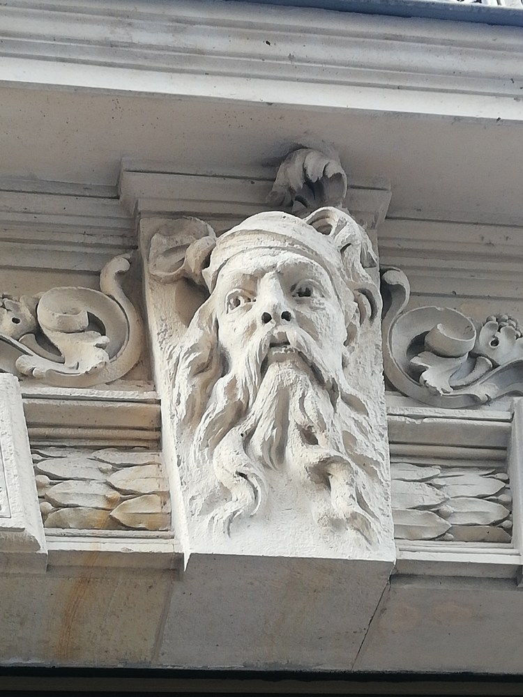 -La 1ère porte est située 60 rue du Ranelagh dans le 16è arrondissement. C’est une porte cossue, d’un mauvais goût assumé, dont le style nouveau riche tranche avec l’insolence du visage qui la surmonte.